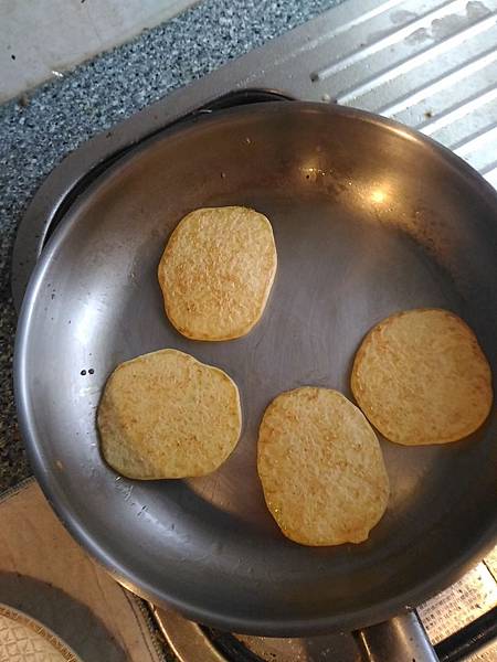 ㄧ邊煎,小朋友邊吃,吃完馬上就又"啊 啊 啊 "再討一片,相當有成就感啊(不過是騙小孩的食物,大家別太認真啊)